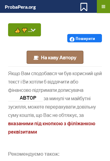![]() Звернення до авторів сайту з пропозицією отримати винагороду від читачівЛітературний інтернет-проект «Проба Пера» щиро переконаний в тому, що: